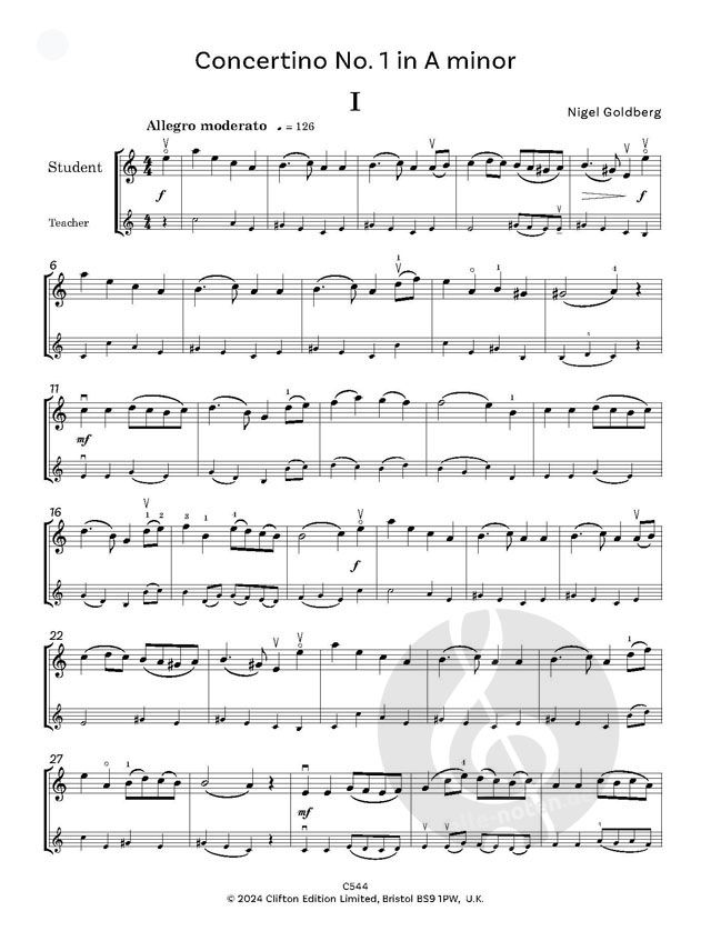 Schüler-Violinstimme entweder mit Lehrer (als Violinduett) oder mit Klavierbegleitung (Vln & Pno).