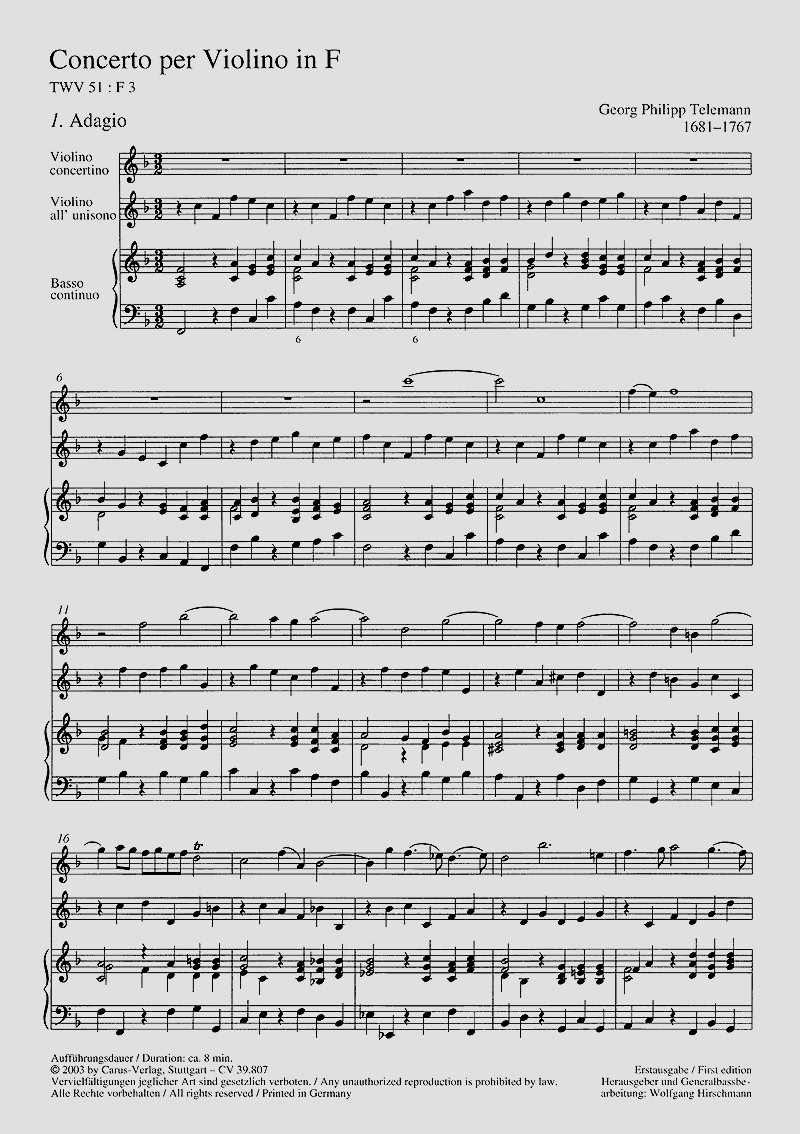 Concerto per Violino in F TWV 51:F3