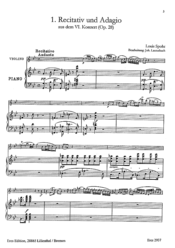 Einrichung Johann Lauterbach. Einzelne Sätze aus: Recitativ und Adagio aus dem VI. Konzert op. 28 Adagio aus dem IX. Konzert op. 55 Barcarole op. 135 Nr. 1.