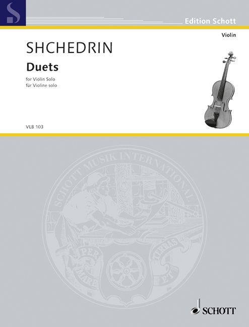 Mit seinem Stück 'Duets' für Violine solo hat Rodion Shchedrin einen Dialog im Monolog geschrieben. In den auf zwei Systemen verteilten Noten stellt die Violine ihre eigenen charakteristischen Gegensätze vor. Sie widerspricht sich selbst: fällt mit Staccato-Tönen abrupt in die eigenen Legato-Bögen ein, durchbricht leise Phrasen im expressiven Fortissimo und antwortet auf Bach'sche Formsprache mit widerspenstig zeitgenössischer Gegenrede.