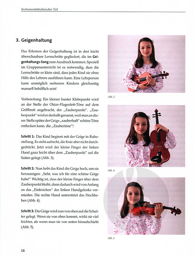 Das Lehrerhandbuch bietet sehr präzise und ausführliche Erläuterungen zu den einzelnen Lernschritten. Die beiliegende DVD demonstriert den methodischen Aufbau. Das Kapitel 'Hörerziehung' beinhaltet eine große Anzahl musikalischer Spielideen zu den Themen Rhythmus, Tonhöhenvorstellung und Ausdruck.