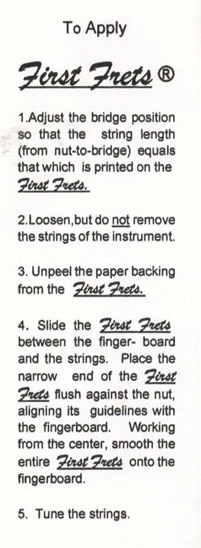 Inexpensive, mathematically designed for accuracy, and made of clear, self-adhering vinyl, it applies easily to the fingerboard. Coloured lines arranged in a scale pattern show the students exactly w...