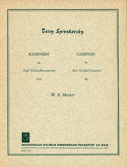 Kadenzen zu den Violinkonzerten von Mozart: A-Dur KV 219, D-Dur KV 218, G-Dur KV 216, D-Dur KV 211, B-Dur KV 207 und Adagio KV 261