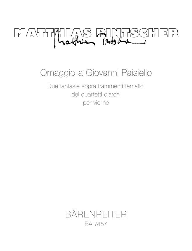 Zwei Fantasien über Themen-Fragmente aus dem 9. und 3. Streichquartett Giovanni Paisiellos. VSolo - Spielpartitur