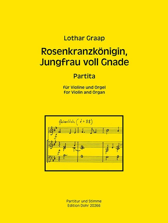 In katholischen Kirchengemeinden in Süddeutschland ist das Lied 'Rosenkranzkönigin, Jungfrau voll Gnade' besonders bekannt und beliebt. Hier ist die Melodie dieses Kirchenliedes für Violine und Orgel bearbeitet. Seinen Einsatz in einer Messfeier findet diese Bearbeitung vorzugsweise während der Kommunionausteilung. Und wenn zum Schluss einer Messe das gesamte Lied von der Gemeinde gesungen wird, ist es sehr schön, die Partita als Schlussstück zu wiederholen. (Lothar Graap)