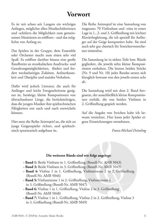 Saitenspiel. Bd. 2. 10 Violinduos m. leichter Klavierbegl.