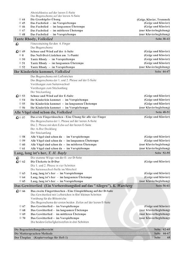 Diese Violinschule basiert auf der 'Muttersprachenmethode'. Sie ist allen jungen Geigenschülern, Eltern und Lehrern gewidmet. Von Anfang an will sie die Freude am Musizieren wecken und gleichzeitig eine solide instrumentaltechnische Grundlage schaffen. Ganz im Zentrum steht das Erlernen von guten, kindgemässen Übegewohnheiten, deren Palette vom Hören, Singen und Tanzen bis hin zum Musizieren reicht. Die hierzu gegebenen Anregungen sollen das Üben beleben und gleichzeitig effektiver machen.