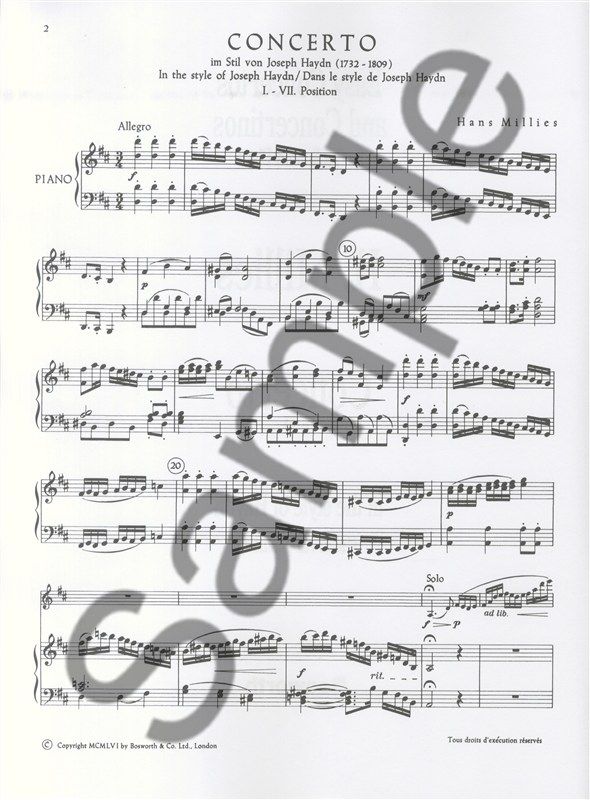 Mozart's Concerto No. 2 in D for violin and piano, arranged in 1st position for young violinists by K. W. Rokos.