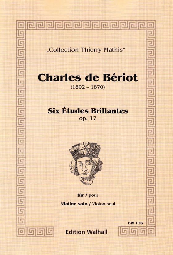 Die sechs Konzert-Etüden für Violine des belgischen Geigenvirtuosen Charles de Beriot sind (mit Strichbezeichnungen und Fingersätzen nach dem Handexemplar des Komponisten) nun wieder erhältlich. Sie sind das Bindeglied zwischen den Etüden der altfranzösischen Geigenschule und der romantischen franko-belgischen Schule von Vieuxtemps und Wieniaws?íki. Beriots Etüden sind für die Oberstufe an Musikschulen und Musikhochschulen genauso geeignet wie für den Konzertgebrauch. Collection Thierry Mathis