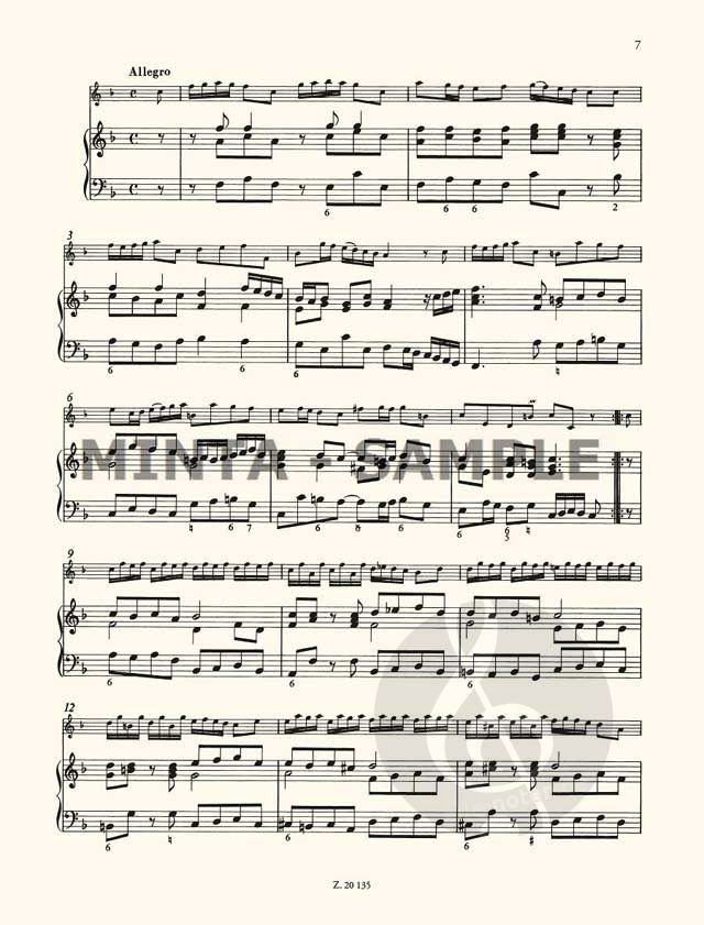 Die vorliegende Ausgabe basiert auf zeitgenössischen Quellen und modernen kritischen Editionen. Ihr Ziel ist es, den Interpreten eine authentische Urtextausgabe zur Verfügung zu stellen, die praktische Lösungen für die Aufführung des Werkes bietet. Aus diesem Grund wurde der Generalbass in der Gesamtpartitur realisiert. Die Violinstimme enthält Ausdruckszeichen (Fingersatz und Bogenführung) sowie Vorschläge für Verzierungen. Um eine authentische Aufführung zu ermöglichen, bei der der Bass durch melodieführende Instrumente (Cello oder Viola da Gamba) verstärkt wird, wurde auch eine Cellostimme hinzugefügt. Die Sonaten sind in separaten Ausgaben erhältlich (Z. 20133-20138).