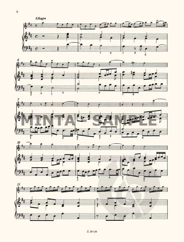 Die vorliegende Ausgabe basiert auf zeitgenössischen Quellen und modernen kritischen Editionen. Ihr Ziel ist es, den Interpreten eine authentische Urtextausgabe zur Verfügung zu stellen, die praktische Lösungen für die Aufführung des Werkes bietet. Aus diesem Grund wurde der Generalbass in der Gesamtpartitur realisiert. Die Violinstimme enthält Ausdruckszeichen (Fingersatz und Bogenführung) sowie Vorschläge für Verzierungen. Um eine authentische Aufführung zu ermöglichen, bei der der Bass durch melodieführende Instrumente (Cello oder Viola da Gamba) verstärkt wird, wurde auch eine Cellostimme hinzugefügt. Die Sonaten sind in separaten Ausgaben erhältlich (Z. 20133-20138).