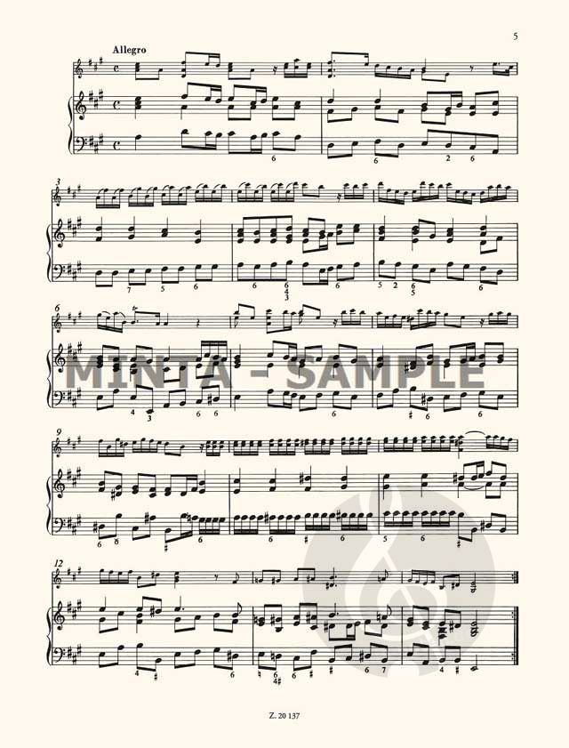 Die vorliegende Ausgabe basiert auf zeitgenössischen Quellen und modernen kritischen Editionen. Ihr Ziel ist es, den Interpreten eine authentische Urtextausgabe zur Verfügung zu stellen, die praktische Lösungen für die Aufführung des Werkes bietet. Aus diesem Grund wurde der Generalbass in der Gesamtpartitur realisiert. Die Violinstimme enthält Ausdruckszeichen (Fingersatz und Bogenführung) sowie Vorschläge für Verzierungen. Um eine authentische Aufführung zu ermöglichen, bei der der Bass durch melodieführende Instrumente (Cello oder Viola da Gamba) verstärkt wird, wurde auch eine Cellostimme hinzugefügt. Die Sonaten sind in separaten Ausgaben erhältlich (Z. 20133-20138).