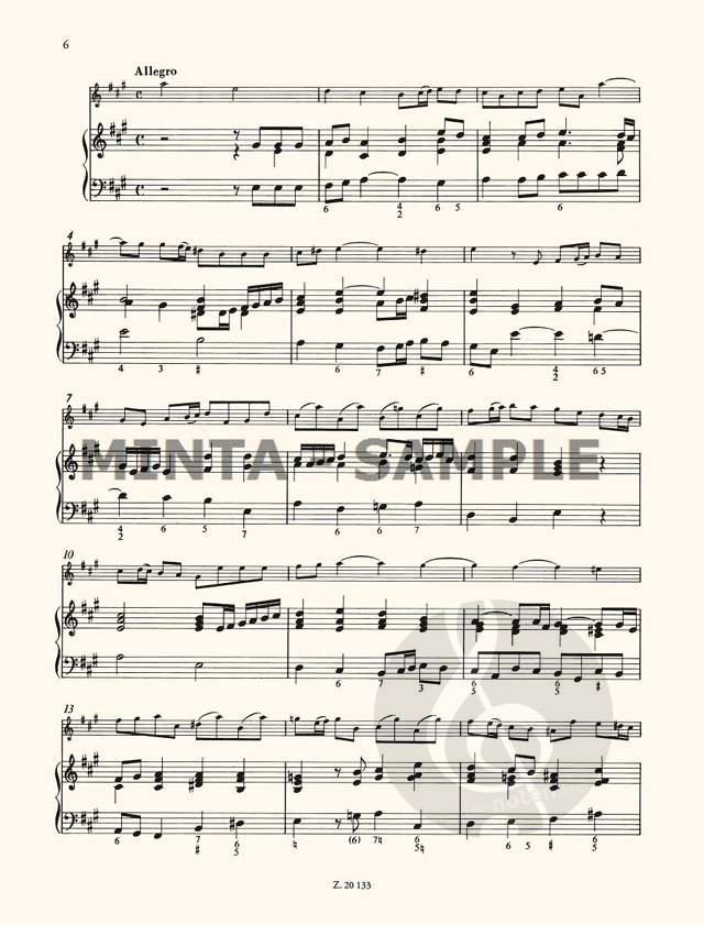 Die vorliegende Ausgabe basiert auf zeitgenössischen Quellen und modernen kritischen Editionen. Ihr Ziel ist es, den Interpreten eine authentische Urtextausgabe zur Verfügung zu stellen, die praktische Lösungen für die Aufführung des Werkes bietet. Aus diesem Grund wurde der Generalbass in der Gesamtpartitur realisiert. Die Violinstimme enthält Ausdruckszeichen (Fingersatz und Bogenführung) sowie Vorschläge für Verzierungen. Um eine authentische Aufführung zu ermöglichen, bei der der Bass durch melodieführende Instrumente (Cello oder Viola da Gamba) verstärkt wird, wurde auch eine Cellostimme hinzugefügt. Die Sonaten sind in separaten Ausgaben erhältlich (Z. 20133-20138).