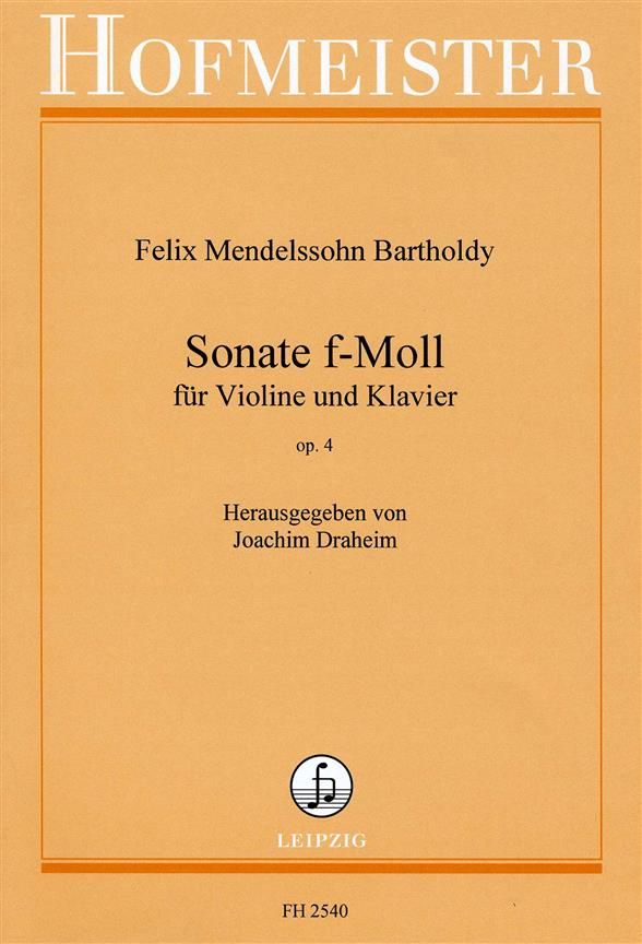 Felix Mendelssohn's Sonata In F Minor Op.4 arranged for Violin with Piano accompaniment by Joachim Draheim.