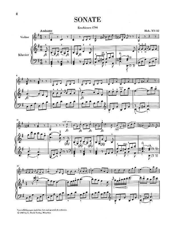 Sonate für Klavier und Violine G-dur Hob. XV:32