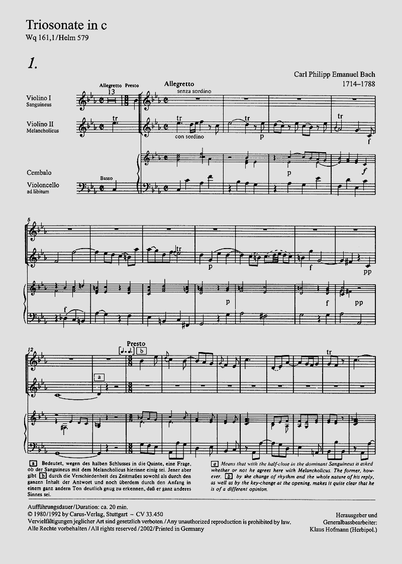 Sanguineus und Melancholicus - 2 Vl, Bc - Partitur mit 3 Stimmen