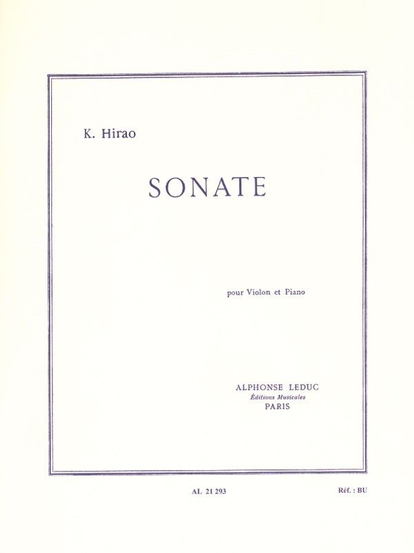 Hirao moved to Paris where he studied harmony, counterpoint and composition at the Ecole César Franck. The Sonate is in three movements; 1) Moderato-Allegro Agitato, 2) Andante, and 3) Vivacissimo. The work is in F major, with the middle movement modulating to D major, however, tonality is substantially exploited. For all advanced violinists andpianists, Hirao's Sonate for Violin and Piano is a riveting addition to the repertoire.