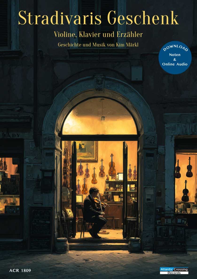 Diese faszinierende Geschichte mit acht abwechslungsreichen Stücken für Violine und Klavier erzählt von den außergewöhnlichen Errungenschaften und der einzigartigen Magie eines der renommiertesten Geigenbauer, Antonio Stradivari. Die Zuhörer werden auf eine Reise durch einen reichen Teppich aus Geschichte und Klang geführt. Jedes Stück bietet alles von melodiösen, fließenden Linien bis hin zu aufregenden, virtuosen Passagen. Die Noten enthalten sowohl die Geschichte als auch die Musik für Violine und Klavier und schaffen so ein unvergessliches Hörerlebnis für Zuhörer aller Altersgruppen. Die Musik kann auch ohne Erzählung aufgeführt werden.