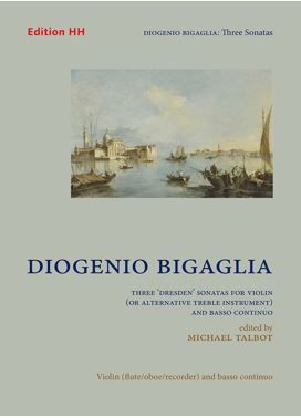 The sonatas of the Venetian composer and priest Diogenio Bigaglia (c.1676-c.1745) have long found favour among recorder players in particular. This group of three sonatas for violin (or alternative treble instrument) and continuo, dating from before 1716/17, when they were copied in Venice by the visiting Dresden violinist J. G. Pisendel, make an attractive addition to the catalogue. Relatively easy to perform, they are full of personality and conspicuous musical vitality.