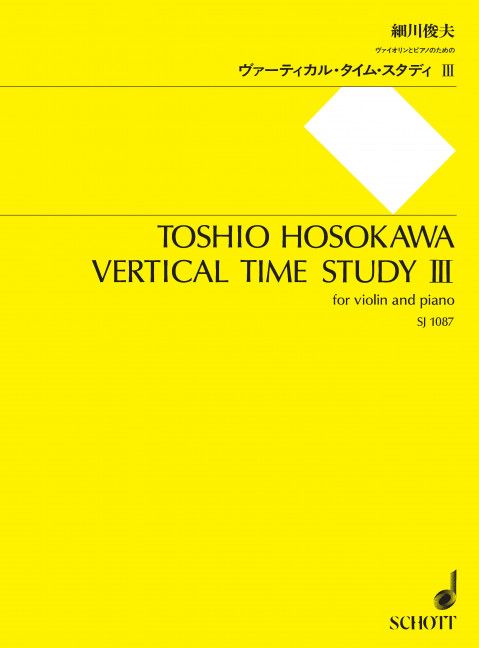Der japanische Komponist Toshio Hosokawa ist ein Wanderer zwischen den kulturellen Welten von Ost und West. Eigenen Aussagen zufolge hat er in seiner Heimat ein Gefühl für das Wesen eines einzelnen Tons, für den "vertikalen Klang" entwickelt, während er im Westen mit der Konstruktion von Tonbeziehungen, dem "horizontalen Klang", vertraut wurde. Wie Hosokawa schreibt, symbolisiert die Violine im 1994 komponierten "Vertical Study III" die innere Stimme eines Menschen, das Klavier steht für die Natur und für das Universum, welche den Menschen umgeben. Die Stille entspricht den grenzenlosen Tiefen der menschlichen Seele. Diese Musik strahlt Ruhe und Gelassenheit aus und lädt zur Meditation ein.