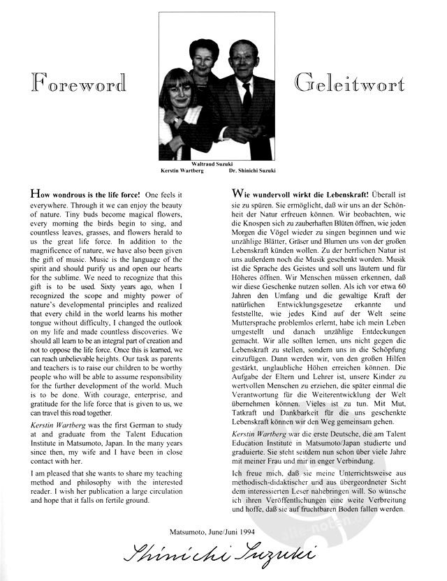Die dreibändige Sammlung 'Vorspiel-Training' stellt ein Kompendium für den Violinunterricht der Mittelstufe dar. Sie kann sowohl im Suzuki-Bereich als auch im traditionellen Violinunterricht verwendet werden. Ebenso ist sie für Wiedereinsteiger und für Autodidakten geeignet.