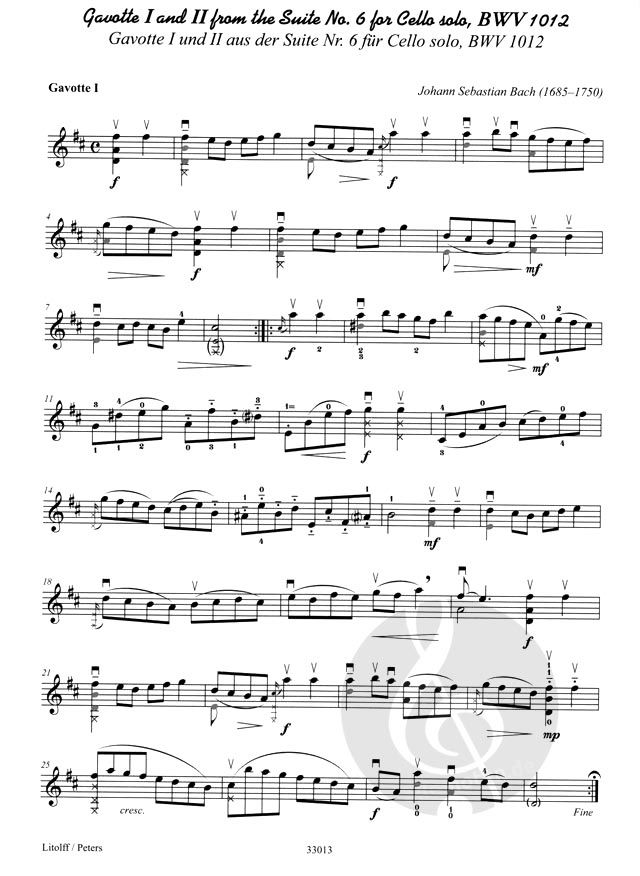 Johann Sebastian Bach Gavotte I und II aus der Cello-Suite Nr. 6 in D-Dur, BWV 1012