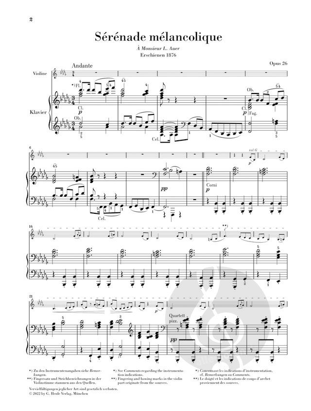 Dieser umfangreiche Band enthält sämtliche Werke, die Tschaikowsky für Violine und Klavier komponierte oder selbst arrangierte. Bekannt und beliebt sind vor allem die drei größeren Violinwerke Opus 26, 34 und 42, die der G. Henle Verlag auch als praktische Einzelausgaben anbietet. Echte Entdeckungen hingegen versprechen die drei kurzen Einzelsätze, mit denen Tschaikowsky reizende Bearbeitungen eigener Werke vorlegte. Tschaikowskys Violinwerke litten lange Zeit unter verfälschten, von Geigern nachträglich stark bearbeiteten Notenausgaben - umso wichtiger, dass als Herausgeber dieser Urtext-Edition der russische Tschaikowsky-Spezialist Alexander Komarov verantwortlich zeichnet. Er zog sämtliche relevanten Originalquellen in internationalen Archiven zu Rate und garantiert so höchste Verlässlichkeit des Notentextes. Mit Ingolf Turban konnte ein Geigenvirtuose ersten Ranges für die stilgerechte Bezeichnung der Violinstimme gewonnen werden.