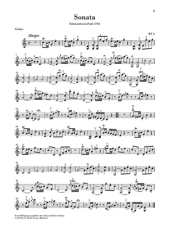 Mozarts früh erkannte Höchstbegabung konnte zu seiner Zeit nur als von Gott geschenktes Wunder verstanden werden. Als solche 'Wunderkinder' wurden Wolfgang Amadeus und seine fünf Jahre ältere Schwester Maria Anna auf ihren Reisen durch Westeuropa zwischen 1763 und 1766 bestaunt. In Paris entstanden die Klaviersonaten 'mit Begleitung einer Violine' KV 6-9. Wunderbar frische, abwechslungsreiche Musik. Zum Klavierpart gesellt sich eine Violinstimme, die Akzente setzt, allerdings nicht im Sinne einer Gleichberechtigung wie in den späteren großen Violinsonaten (siehe HN77-80). Nicht nur für den Klavier- und Geigenunterricht eignet sich diese Musik bestens - auch diejenigen Musiker, die schon 'alles' kennen, können hier Schätze heben.