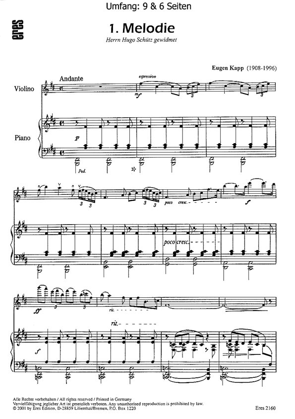 Für Violine und Klavier (1. Melodie / 2. Nocturne)Eres Estonia Editionßßß