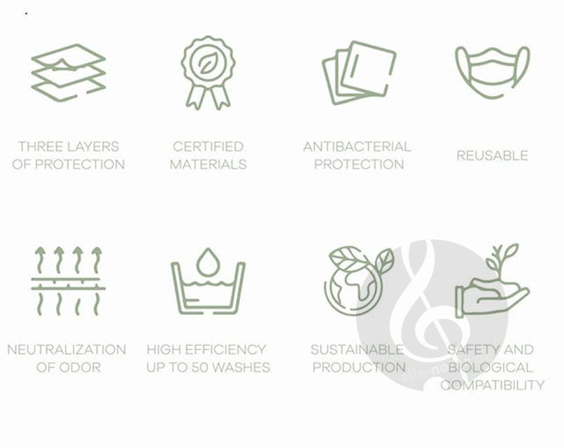 Waschanleitung: formstabil und farbecht nach bis zu 50 Waschgängen - nicht bleichen - nach 4 bis 5 Stunden Nutzung bitte waschen - die Maske vor Nutzung bitte waschen Zertifikate: CITEVE (Portuguese Technological Institute) nr 7386/2020 - GOTS (Global Organic Textile Standards)