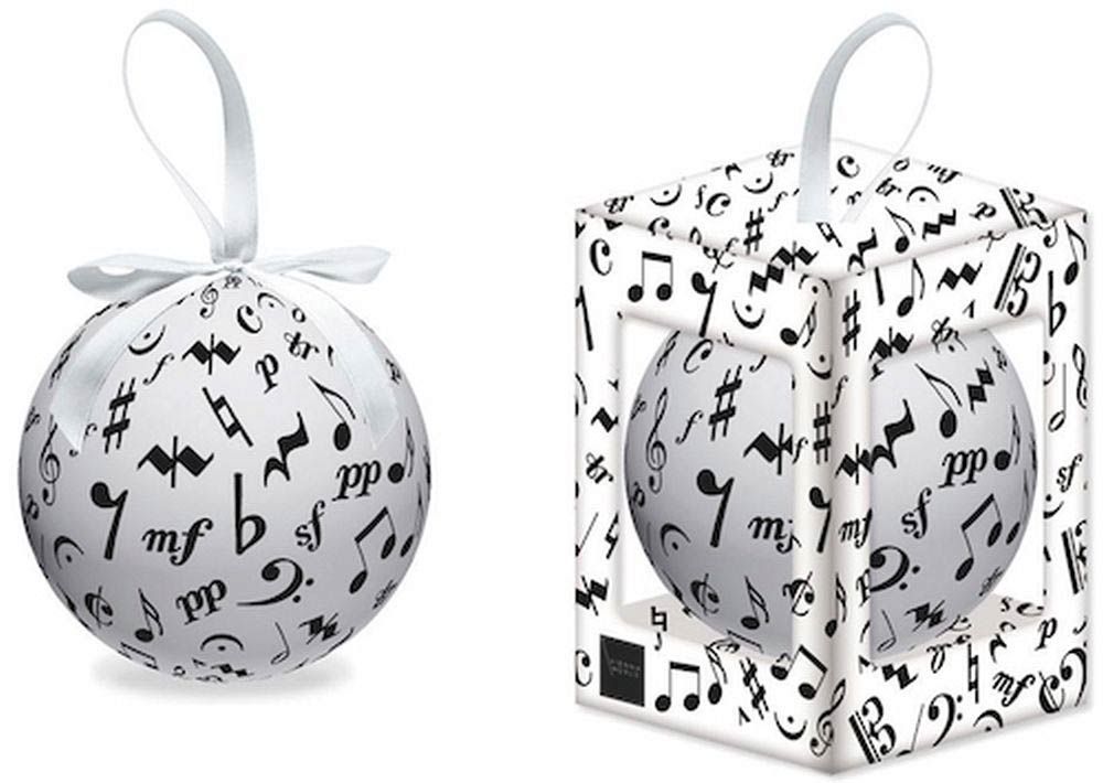 Add some musical flair to your Christmas tree with the Music Symbols Christmas Tree Ball from Vienna World. This attractive black and white ball is decorated with musical symbols.