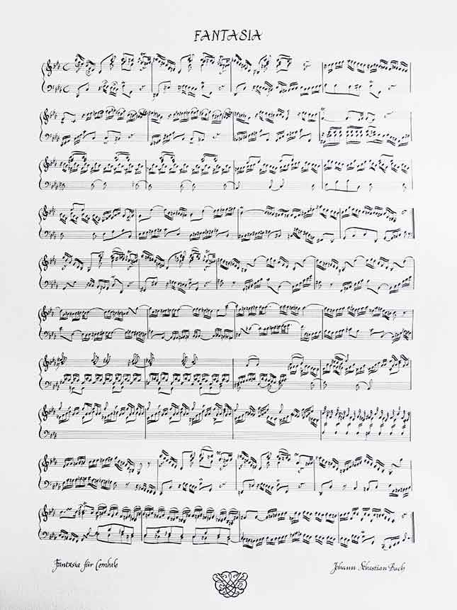 A large poster featuring J. S. Bach's Fantasia For Piano.