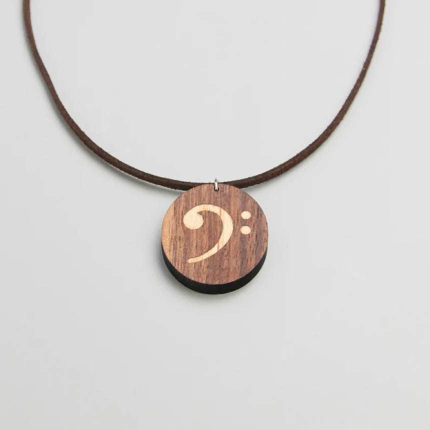 Halskette Bassschlüssel Walnuss/Ahorn