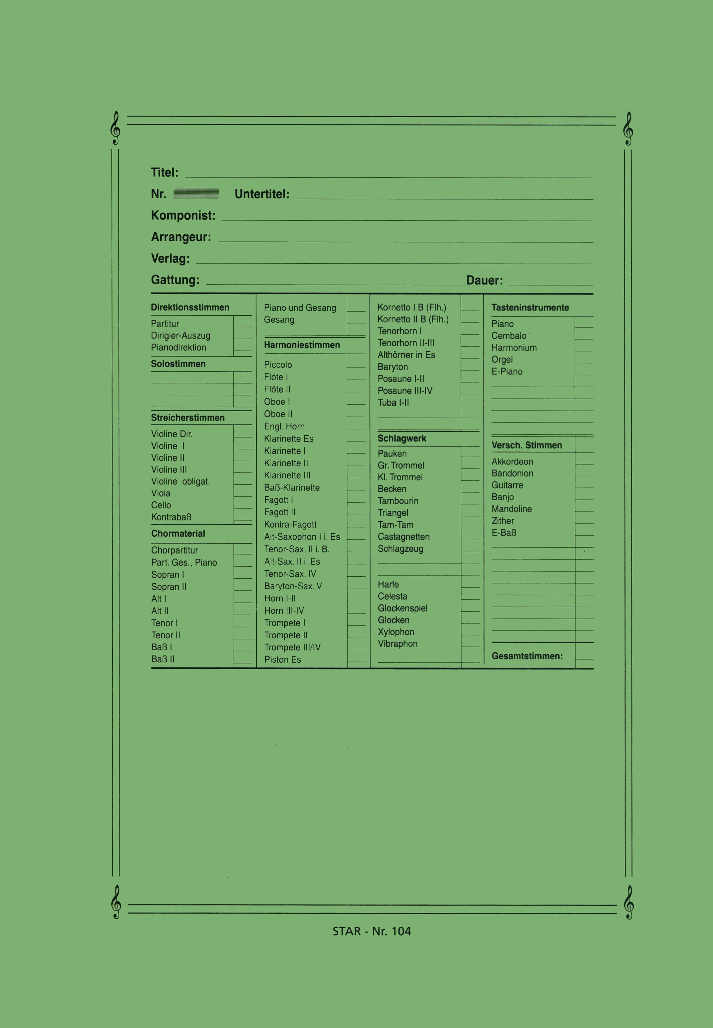- Verlag Star-Notenschreibpapiere