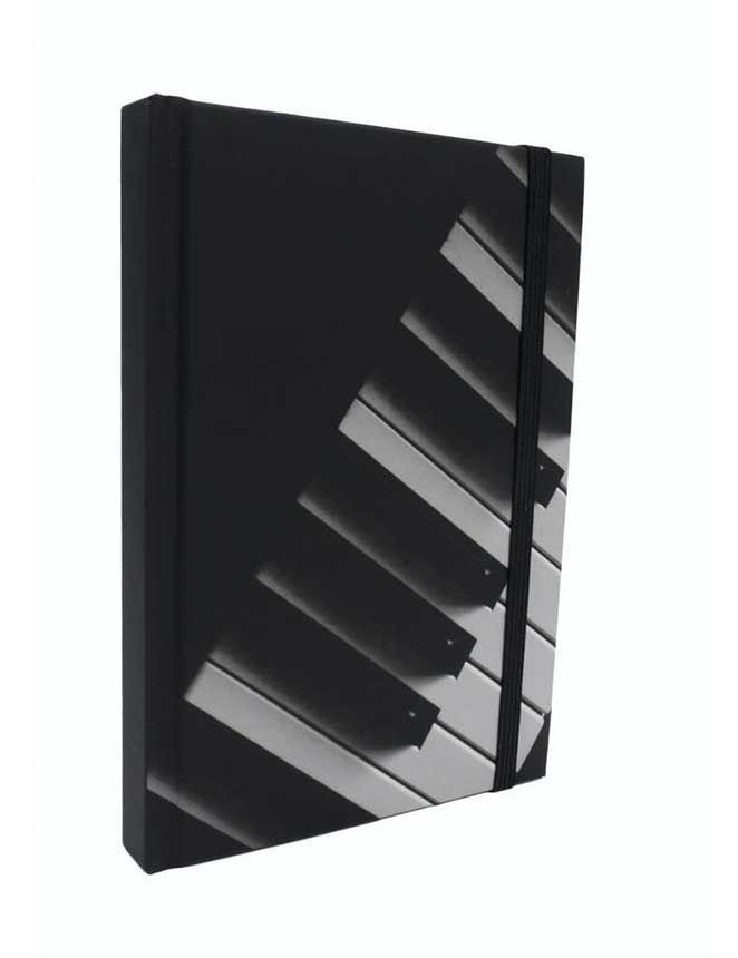 Harte Hülle mit Soft Touch: Bietet Haltbarkeit und einen angenehmen Griff; Stiftschlaufe: Hält Ihren Stift für schnelle Notizen griffbereit; Gummibandverschluss: Sichert das Notizbuch, wenn es nicht benutzt wird; Lesezeichen aus Band: Hilft Ihnen, die zuletzt geschriebene Seite leicht wiederzufinden; erweiterbare Innentasche auf der Rückseite: Ideal für die Aufbewahrung von losen Papieren oder Notizen. Es ist die perfekte Wahl für Musikliebhaber oder alle, die gerne Ideen und Gedanken notieren.