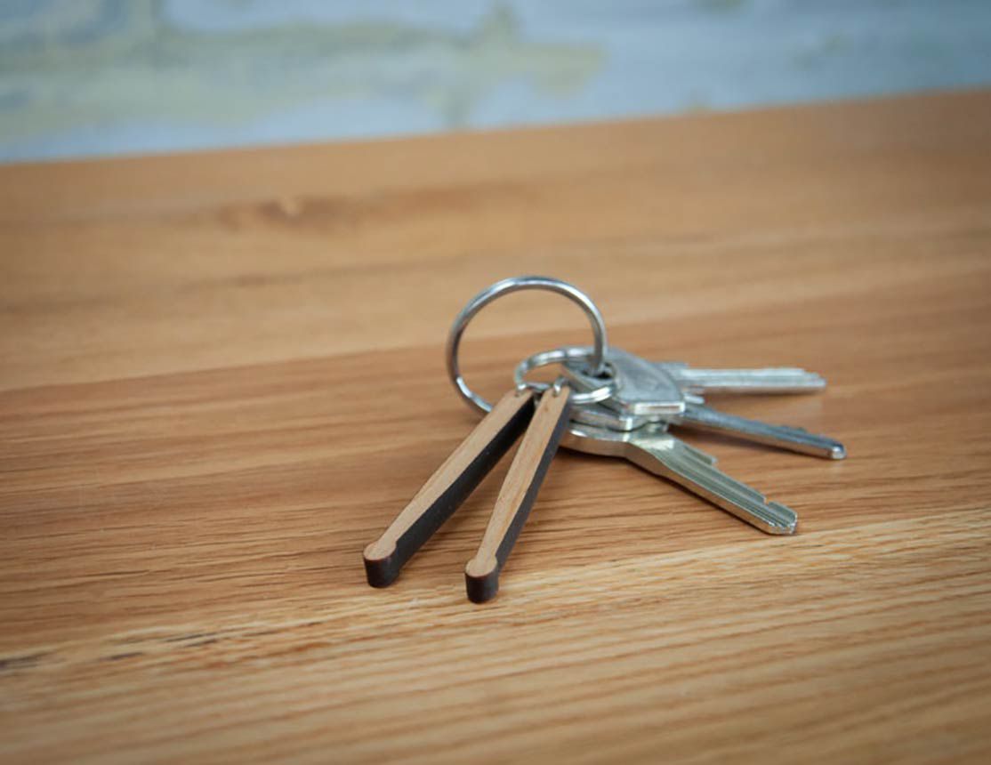 Der Schlüsselanhänger ist aus massivem Holz gefertigt, so dass er auf Dauer gebaut ist.