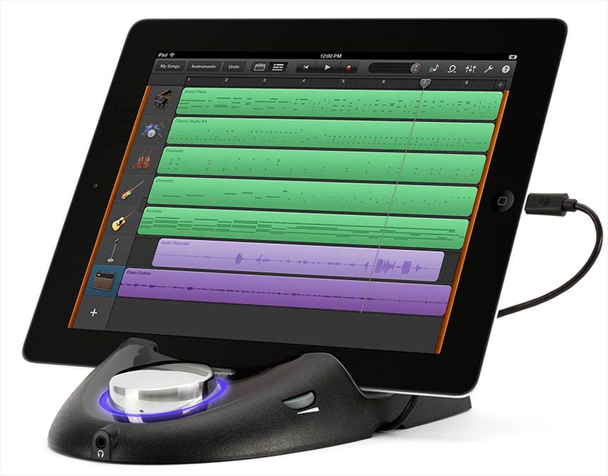 StudioConnect gives your iPad: audio in and out, MIDI in and out, and a stereo headphone jack with its own volume control so you can monitor what's going in (or out). Digital music-making has never been easier. Owning an iPad makes it easier still, taking it to a whole new level of versatility and portability. Whether you're a serious musician, a confirmed hobbyist, or a budding composer, you know about MIDI (Musical Instrument Digital Interface). Unlike audio recording, MIDI lets you capture the digital instructions for a musical performance, and then play them back later on a MIDI instrument. In one compact device for your iPad, StudioConnect combines both the audio and the MIDI hemispheres of the audio world. Audio In and Out Plug your guitar into StudioConnect's mono 1/4 inch. instrument jack and play directly into GarageBand or other apps. Or plug a recorder or mixer into StudioConnect's stereo 3. 5 mm input jack and connect the whole band to your iPad. Left- and right-channel RCA plugs give you line-level stereo audio-out. For your headphone there's a separate front-panel 3. 5 mm stereo jack with its own volume knob. MIDI In and Out For your MIDI controller or drum pad, StudioConnect's rear panel gives you a standard 5-pin DIN MIDI-in port. For MIDI Out, there's another 5-pin DIN MIDI connector on StudioConnect's rear panel. Connect it to your sequencer, patch bay, or other MIDI gear. This lets you launch your favorite MIDI controller app and use your iPad as a musical instrument. StudioConnect lets you connect everything for music-making to your iPad, and connect your iPad to everything musical. And as if that weren't enough, it even charges your iPad while you play.